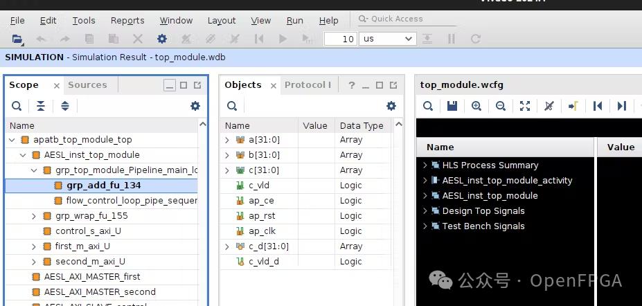 函數(shù)行為很奇怪,接下來在 json 中更改黑盒函數(shù) II,看看它如何影響仿真。打開 add.json 并將 II 更改為 10。再次運(yùn)行 C 綜合并重新運(yùn)行 C/RTL 協(xié)同仿真。
