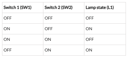 注:在三線制控制方式中,當開關(guān)處于同一狀態(tài)時,燈處于OFF狀態(tài),如下電路所示: