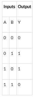 上面的真值表清楚地表明,當異或門的兩個輸入端相對于對方處于不同的邏輯電平時,其輸出才會變?yōu)椤案唠娖健?。如果這兩個輸入,A和B都在邏輯電平“1”或都在邏輯電平“0”,則輸出為“0”。