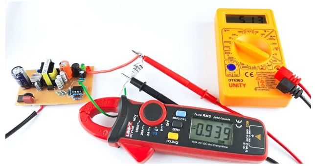 為了測(cè)試電路,我們有如下所示的測(cè)試設(shè)置。為了測(cè)量輸出電壓,我們使用萬用表,為了測(cè)量電流,我們使用鉗形表。