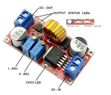 在上面的圖像中,您可以看到首先我們有直流輸入連接器,它連接到一個非調(diào)節(jié)電源。接下來,我們有兩個10K電位計,用于設(shè)置恒流和電壓水平。此外,板上有三個LED指示燈;靠近輸入連接器的第一個顯示模塊處于恒流模式時,而靠近輸出的另外兩個主要用于電池充電應(yīng)用(電池充電和電池充滿指示器)。除此之外,該IC的輸入電壓范圍為8V至36V,器件的輸出電壓為1.25V至32V。在最大負(fù)載下,該器件的PWM占空比可達(dá)100%,工作頻率可達(dá)180khz。模塊恒輸出電流為5A,工作效率高達(dá)96%。如果我們談?wù)摫Wo(hù)功能,它有熱關(guān)機(jī),短路保護(hù)和電流限制功能。