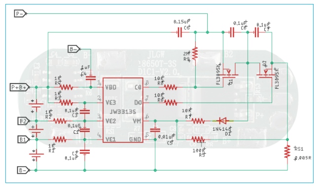 3S, 6A鋰離子電池管理和保護(hù)模塊(BMS)的原理圖,零件清單和工作原理分析