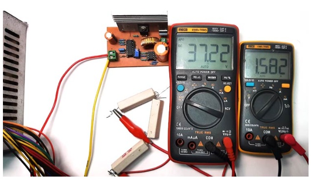 如您所見,上面的測試設置是用來測試電路的。ATX PC電源用于為電路供電,這就是輸入電壓保持在12V的原因。您還可以看到電路目前在升壓模式下運行,因此在這種情況下輸出保持在18伏,并且我已將最小負載附加到電路上,并且在這種情況下它正在繪制約100mA。