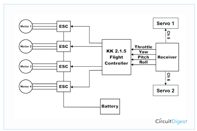 如果你是一個初學(xué)者,你應(yīng)該知道,如何飛天FS-i6的工作原理。如我們所知,F(xiàn)S-i6具有6個用于PWM和PPM信號的通道,以及i總線和s總線作為附加功能。我們將使用PWM引腳。我們將使用4個通道來控制無人機和2個通道來控制伺服?,F(xiàn)在,為了控制伺服,我們將需要反轉(zhuǎn)一個通道(5或6),以便兩個伺服電機可以在相反的方向上運行。其余的調(diào)優(yōu)可以使用我們提到的教程來完成。