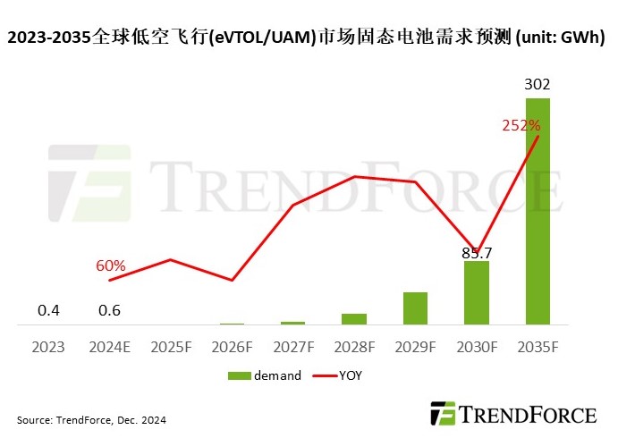 TrendForce集邦咨詢: 低空飛行藍(lán)海市場(chǎng)將有望推升2035年固態(tài)電池需求達(dá)302GWh
