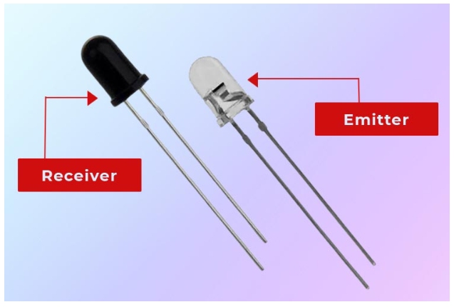 紅外傳感器是機器人能夠跟隨線路的原因。你也可以使用紅外傳感器模塊,但在這里我們已經(jīng)建立了紅外傳感器。一旦您了解它的工作原理,構(gòu)建紅外傳感器就很簡單。紅外傳感器主要由紅外發(fā)送器(紅外LED)和紅外接收器(光電二極管)組成。有時,紅外LED和光電二極管一起被稱為光耦合器或光電耦合器。紅外發(fā)射LED,顧名思義,發(fā)射紅外光。根據(jù)波長、輸出功率和響應(yīng)時間的不同,紅外發(fā)射機可以分為不同的類型。與此類似,根據(jù)波長、電壓、封裝和其他因素,有各種各樣的紅外接收器。在紅外發(fā)射-接收組合中使用時,接收器的波長應(yīng)與發(fā)射器的波長相匹配。紅外發(fā)射和接收led的照片如下所示。