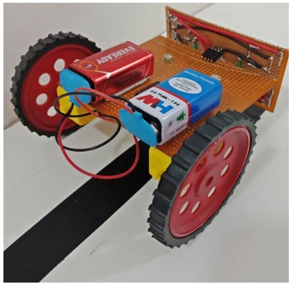 我們已經(jīng)組裝好了機器人,因為它不需要任何代碼,所以是時候看看它的實際效果了。為此,我們所需要做的就是將機器人放在黑線的上方,并觀察它的動作。
