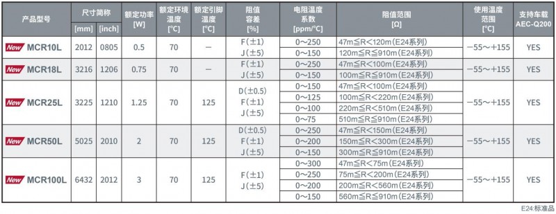 其中,“MCRS系列”通過(guò)優(yōu)化內(nèi)部結(jié)構(gòu)和采用新材料,提高了額定功率并改善了溫度特性(電阻溫度系數(shù)TCR*1),與以往產(chǎn)品相比,以小一號(hào)的尺寸實(shí)現(xiàn)了同等性能。目前產(chǎn)品陣容擁有從1005尺寸到6432尺寸的豐富產(chǎn)品,客戶可根據(jù)安裝空間選擇合適的產(chǎn)品。這有助于設(shè)計(jì)出高效率的緊湊型電路,并大幅提升設(shè)計(jì)靈活性。而“MCRL系列”是“MCRS系列”的低阻值型產(chǎn)品。該系列擁有從2012到6432的尺寸陣容,非常適用于電流檢測(cè)應(yīng)用。