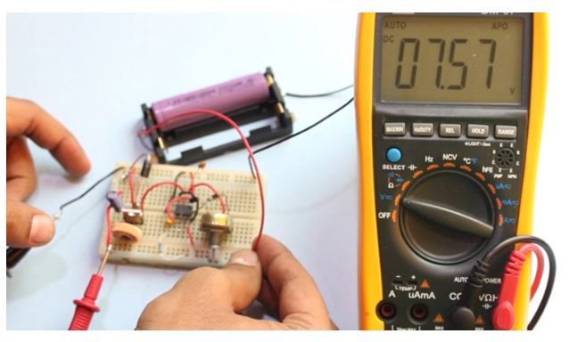 我用一個3.7V的鋰離子電池測試了這個電路,電池被充電到3.4V左右。我將電池連接到升壓轉(zhuǎn)換器,電壓顯示讀數(shù)為7.5V。升壓變換器輸出端的圖像如下所示。