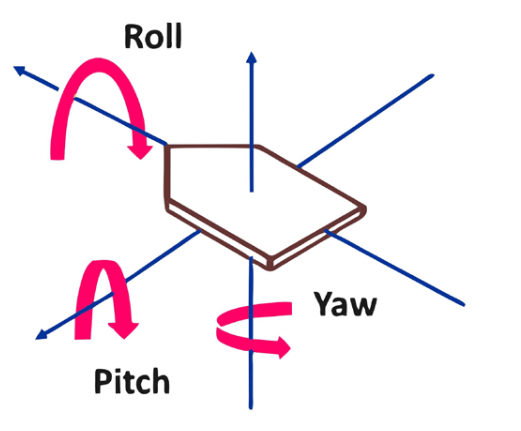 在了解四旋翼飛行器的飛行動力學之前,我們需要了解四旋翼飛行器角運動的三個主要參數,即偏航、橫搖和俯仰。