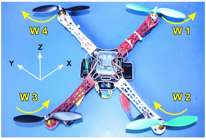 每個電機在Z方向上提供一個向上的推力。