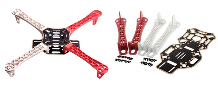 我們將使用寬度為450mm的f450。它由玻璃纖維和耐用尼龍制成。它有兩塊板,一塊板上有集成PCB,所以我們可以直接焊接esc。F450武器加強,以防止任何損害;我們可以很容易地把馬達放在手臂的邊緣。我們使用的是m2.5尺寸的螺釘,是內六角螺釘或內六角螺釘。