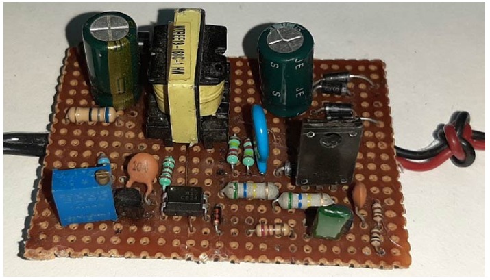 對于這個演示,電路是在原理圖的幫助下在一個虛線板上構(gòu)造的;請注意,我是在我的工作臺上測試電路進(jìn)行演示,所以我沒有包括許多保護(hù)功能,如過壓保護(hù)和短路保護(hù)。如果你用它來給其他東西供電,建議打開那些保護(hù)和濾波電路。