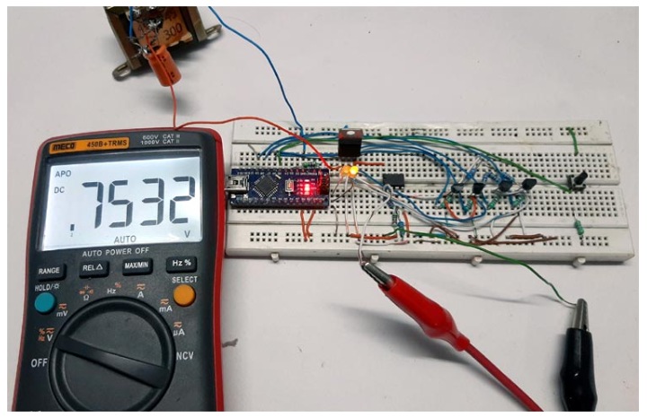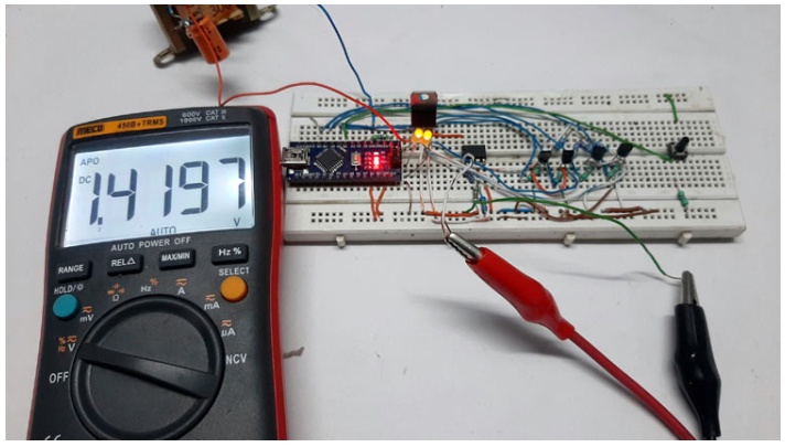 在這里,Arduino Nano用于控制晶體管的基極和mosfet的柵極,萬(wàn)用表用于顯示電壓水平,因?yàn)锳rduino的內(nèi)置ADC在測(cè)量低電壓水平時(shí)做得非常差。