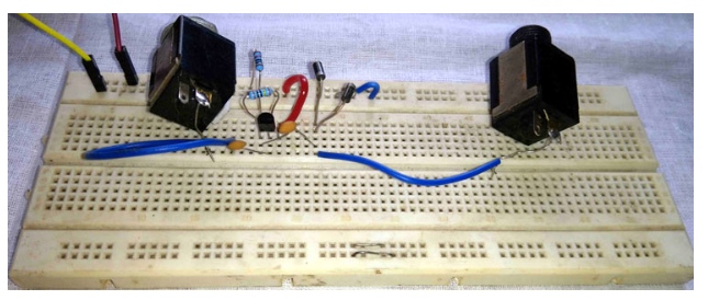 我們上面解釋的電路是在面包板上構(gòu)建的,并用真正的吉他進(jìn)行了測(cè)試。一旦電路完成,面包板設(shè)置如下所示。