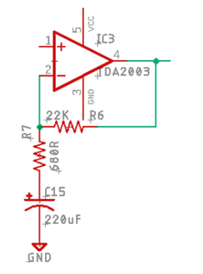反饋回路中的電容有助于制作低通濾波器,這有助于增強(qiáng)放大器的低音響應(yīng)。C15的值越小,低音就越柔和。更大的C15值會給你一個(gè)更有力的低音。