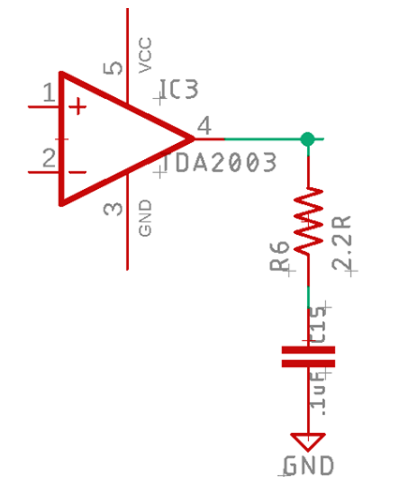 輸出濾波器或通常稱為Zobel網(wǎng)絡(luò)防止揚(yáng)聲器線圈和電線產(chǎn)生振蕩。它還拒絕從揚(yáng)聲器到放大器的長導(dǎo)線接收的無線電干擾;這也可以防止他們進(jìn)入反饋循環(huán)。