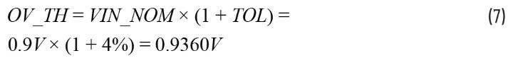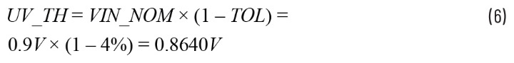 MAX16193采用該架構,這是一款精度為0.3%的雙通道監(jiān)控電路,其選定的標稱輸入電壓(VIN_NOM)為0.9 V,輸入容差水平(TOL)為4%。以下公式用于確定UV和OV閾值水平(UV_TH和OV_TH):