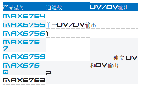表1列出了ADI窗口電壓監(jiān)控器的示例,這些監(jiān)控器具有基于通道數的電阻可編程UV和OV閾值。