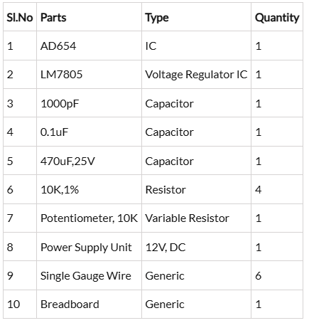 這里使用集成電路AD654來演示操作,這是一個單片電壓到變頻器。示波器也用于顯示輸出方波。
