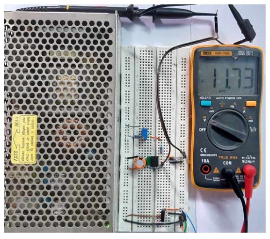 該電路是在無焊面包板上構建的,其組件如圖所示,為了演示目的,在放大器的輸入部分添加一個電位器來改變輸入電壓,這樣,我們可以觀察輸出的變化。