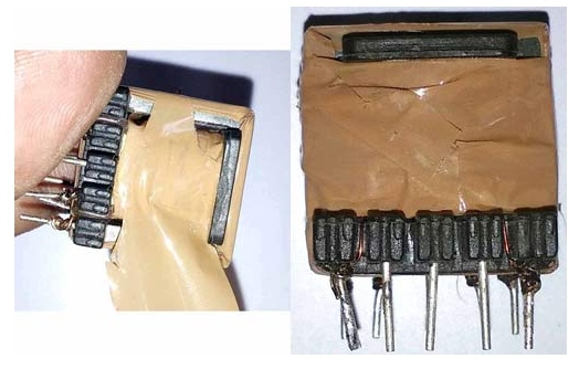 第四步:現(xiàn)在我們可以用管道膠帶牢牢地固定兩個(gè)核心。完成后,完成的變壓器應(yīng)該如下所示。