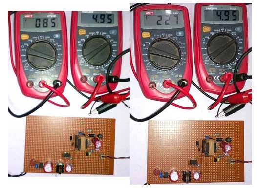 如果將電路轉(zhuǎn)換為適當(dāng)?shù)腜CB,我們可以期望電源的紋波輸出在50mV pk-pk內(nèi),即使使用手動(dòng)繞組變壓器。然而,由于veroboard并不是一個(gè)安全的選擇,使開關(guān)模式電源在交直流域,它不斷地被建議,在實(shí)際應(yīng)用高壓電路之前,必須建立適當(dāng)?shù)腜CB。
