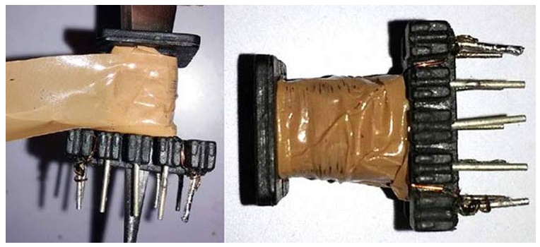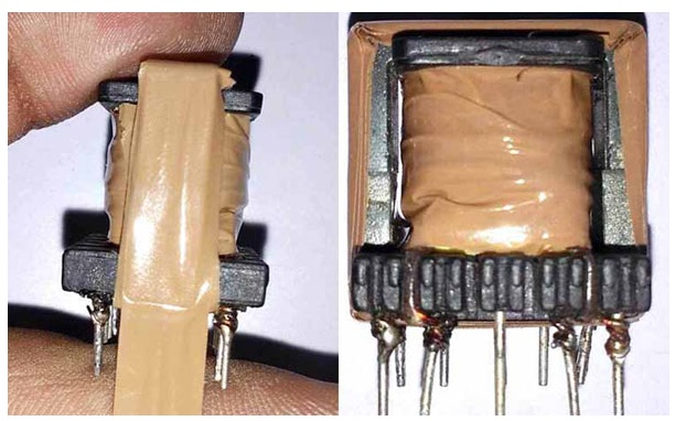 一旦初級(jí)和次級(jí)繞組完成和管道膠帶被使用,我的變壓器看起來像如下所示