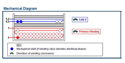 在上圖中,繞組的起點(diǎn)和繞組的方向被描述為一個(gè)力學(xué)圖。要制造這個(gè)變壓器,需要下列東西