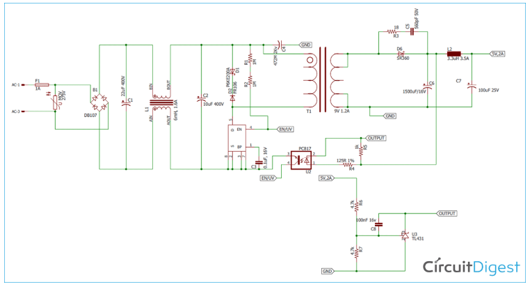 在直接構(gòu)建原型部分之前,讓我們探索5v 2A SMPS電道圖及其操作。