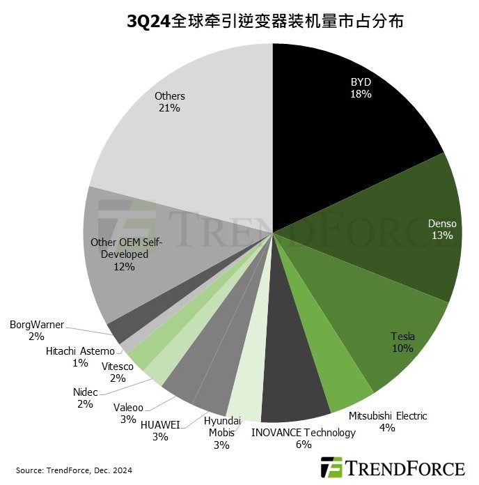 TrendForce集邦咨詢: 3Q24中國(guó)電動(dòng)車牽引逆變器裝機(jī)量占全球61%,歐洲積極推進(jìn)改革