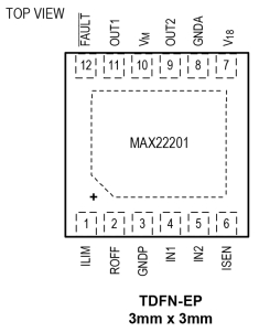 該器件采用小型TDFN12 3mm x 3mm封裝。MAX22201/2/7具有小尺寸封裝、高效率并集成準確的電流檢測功能,因此非常適合空間和功耗敏感型應(yīng)用,比如有刷直流電機驅(qū)動、鎖閉閥和電磁閥以及單相步進電機驅(qū)動。
