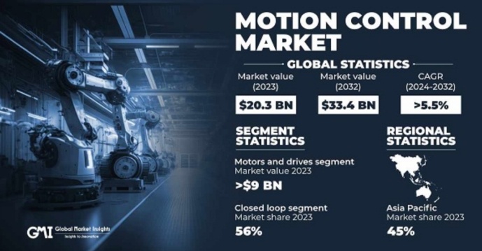 隨著工業(yè)自動化、智能制造和物聯(lián)網(wǎng)的發(fā)展,市場對運動控制解決方案的需求持續(xù)增長。作為驅(qū)動機械運動的關(guān)鍵技術(shù),電機和運動控制系統(tǒng)被廣泛應(yīng)用于工業(yè)自動化、機器人、消費電子、醫(yī)療設(shè)備、自動駕駛以及智能家居等多個行業(yè)。據(jù)市場調(diào)研公司GMI預(yù)測,2023年,全球運動控制市場的規(guī)模約為203億美元;市場預(yù)計在2024至2032年期間的復(fù)合年增長率(CAGR)為5.5%,2032年,市場規(guī)模預(yù)計達到334億美元。