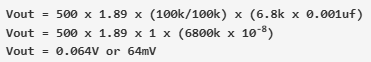 所以,當(dāng)一個500赫茲的頻率應(yīng)用在電路上時,電路將提供64毫伏的輸出。