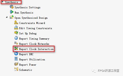 如圖1所示,點(diǎn)擊Synthesis-->Report Clock Interaction.