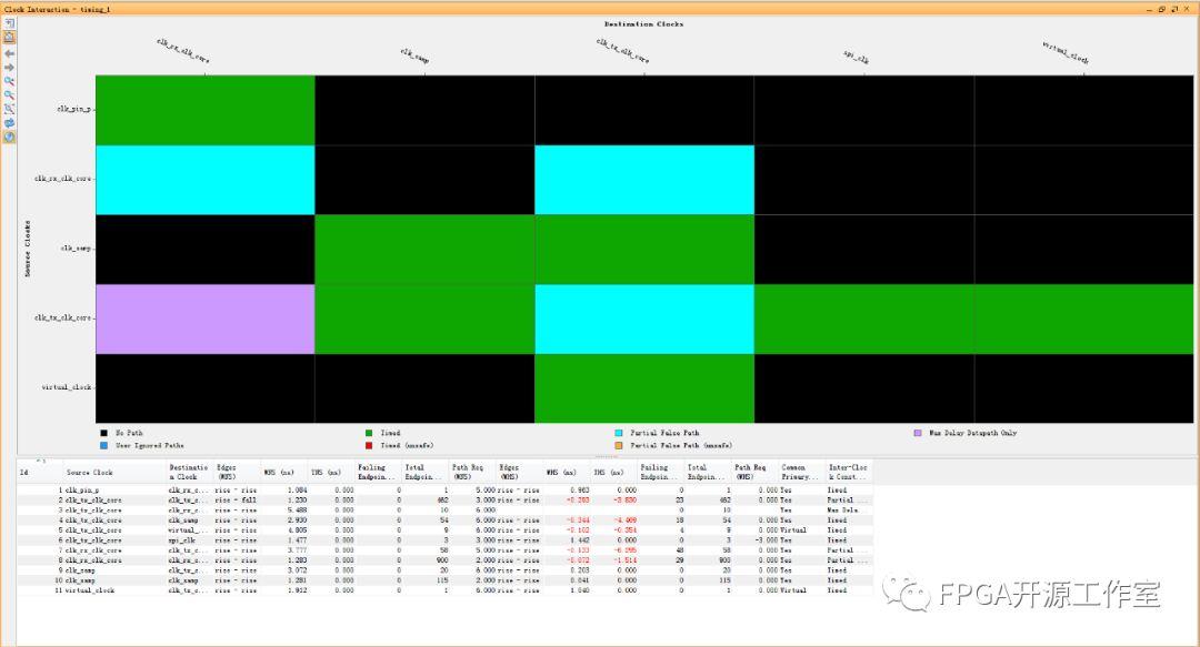 Report_clock_interaction呈現(xiàn)的報(bào)告并不是根據(jù)時(shí)序約束生成的,但是和時(shí)序約束有關(guān),它反映出用戶定義的偽路徑。