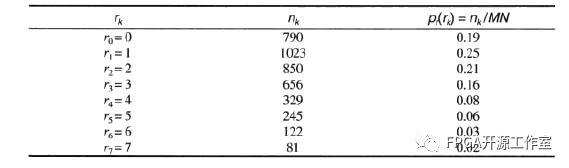 假設(shè)一幅大小為64*64像素(MN=4096)的3 bit圖像(L=8)的灰度分布如下表。其中灰度級(jí)是范圍[0,L-1]=[0-7]中的整數(shù)。