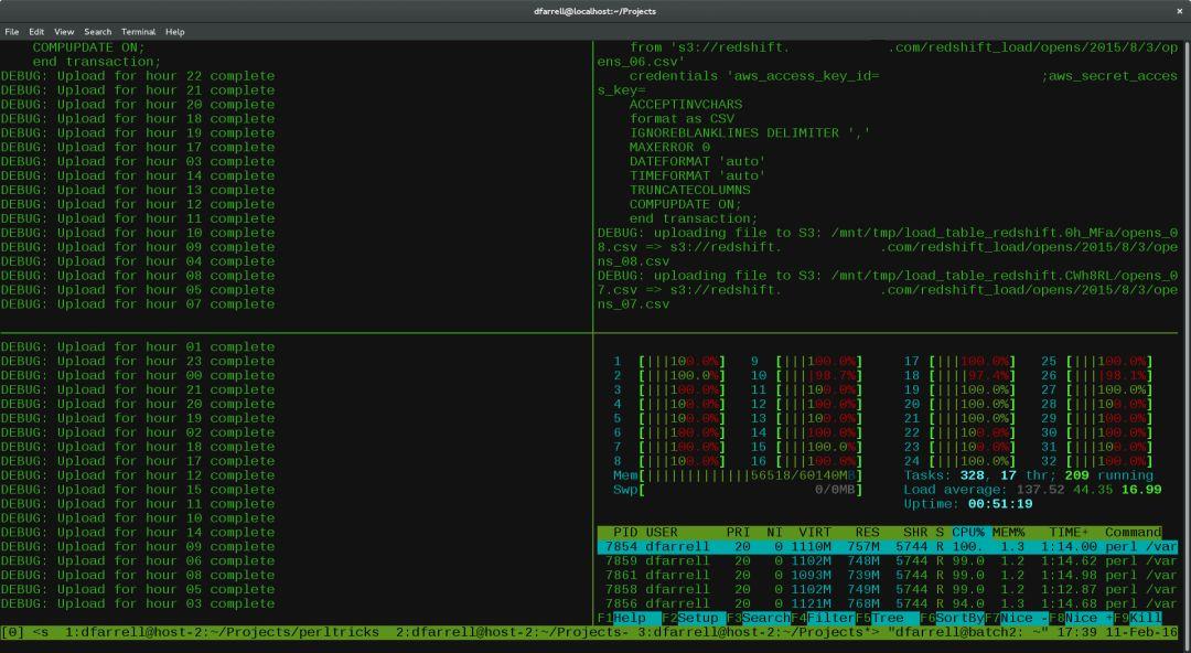提供了強勁的、易于使用的命令行界面 可橫向和縱向分割窗口 窗格可以自由移動和調(diào)整大小,或直接利用四個預(yù)設(shè)布局之一 可在多個緩沖區(qū)進(jìn)行復(fù)制和粘貼 可通過交互式菜單來選擇窗口、會話及客戶端 等等