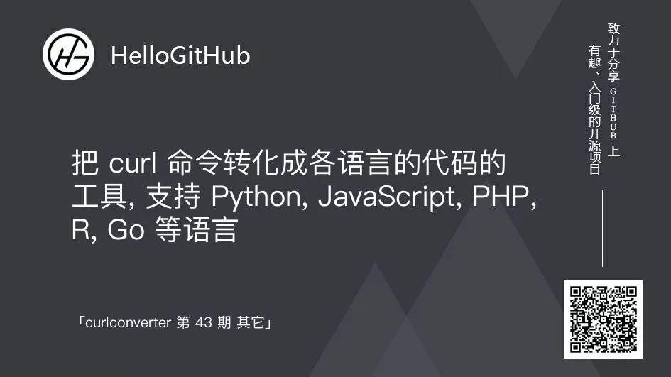 22、curlconverter:把 curl 命令轉(zhuǎn)化成各語言的代碼的工具,支持 Python、JavaScript、PHP、R、Go 等語言。