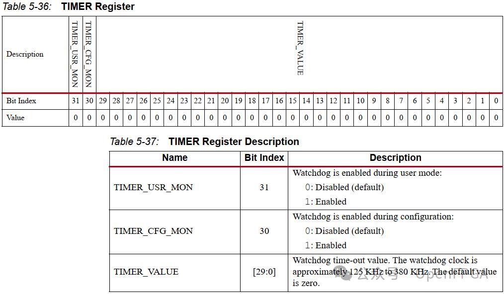 看門狗定時(shí)器在回退比特流時(shí)自動(dòng)禁用。圖6中描述了相關(guān)寄存器。