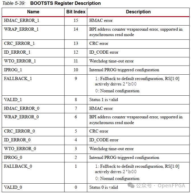 圖7:BOOTSTS寄存器描述-參考:UG470