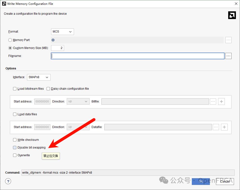 Bit Swapping是指字節(jié)內(nèi)位的交換。除非使用 PROMGen -spi 選項(xiàng)或 SPI 配置模式的 write_cfgmem -interface spi1|spi2|spi4 選項(xiàng),否則 MCS PROM 文件格式始終是Bit Swapping。HEX 文件格式是可選的,具體取決于用戶選項(xiàng)。位流文件 (BIT、RBT、BIN) 則不會(huì)進(jìn)行Bit Swapping。
