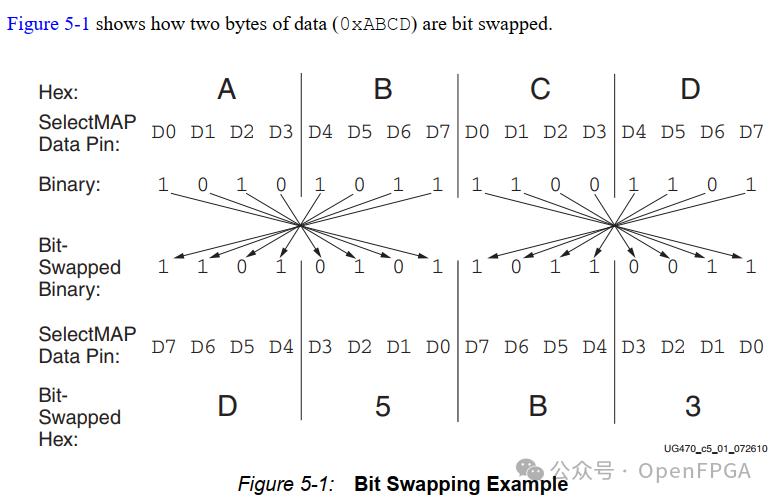 對(duì)于 Xilinx 配置硬件,每個(gè)字節(jié)的 MSB 對(duì)應(yīng)于 D0,而不是 D7,但是在處理位流文件時(shí)候可能會(huì)出現(xiàn)相反的操作,所以這一步是在進(jìn)行糾正后續(xù)的操作。