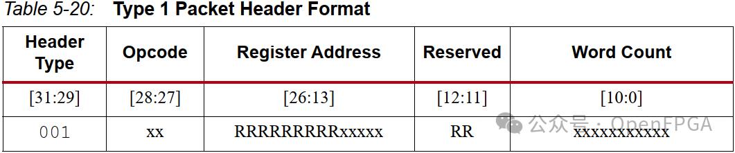 圖1:Type 1 數(shù)據(jù)包頭格式-參考:UG470