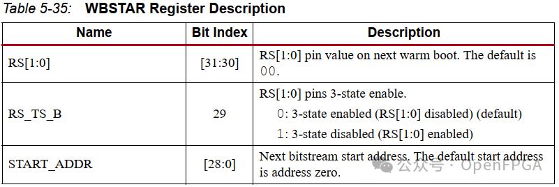 熱啟動(dòng)起始地址寄存器 (WBSTAR) 指定應(yīng)用 IPROG 命令時(shí)要使用的 MultiBoot 地址信息。圖5中描述了相關(guān)寄存器。