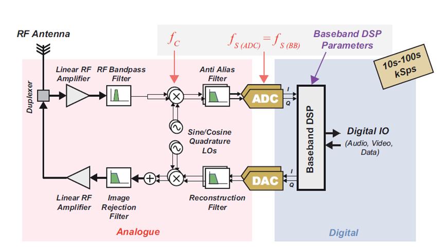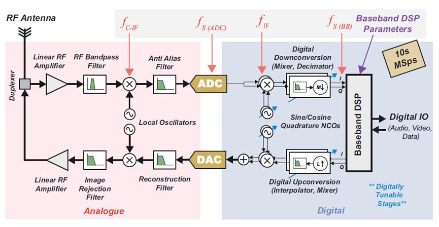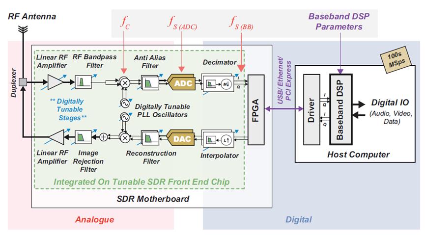 圖5:帶可調(diào)諧射頻的基帶采樣SDR的系統(tǒng)級實現(xiàn)