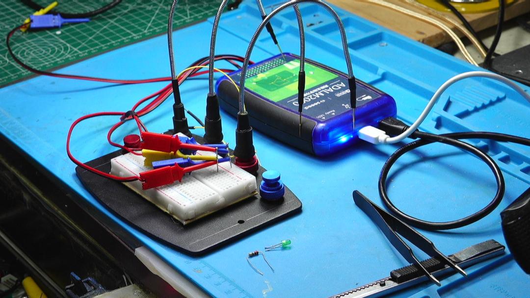 手邊的這款 ADALM2000模塊具有豐富的測(cè)量功能,它內(nèi)部具有兩路信號(hào)源,同時(shí)具有兩路USB信號(hào)采集。這樣變可以通過(guò)它測(cè)量一些器件的伏安特性。下面利用它,測(cè)量二極管的單向?qū)ㄒ约胺聪蚧謴?fù)過(guò)程。