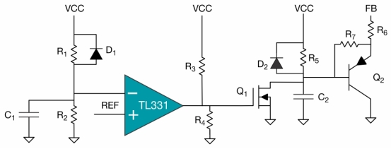 圖 4初級側(cè)鉗位電路使用通用比較器和幾個小信號晶體管。
