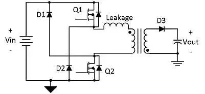 圖 2雙開(kāi)關(guān)反激式將泄漏能量回收至輸入。