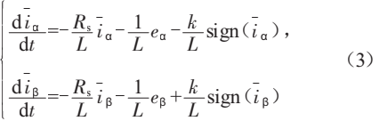 將式(2)代入式(1)得到估算電流誤差方程(3),其中k為滑模增益,sign(x)為開關(guān)函數(shù),x>0時,函數(shù)值為1,x<0時,函數(shù)值為—1。